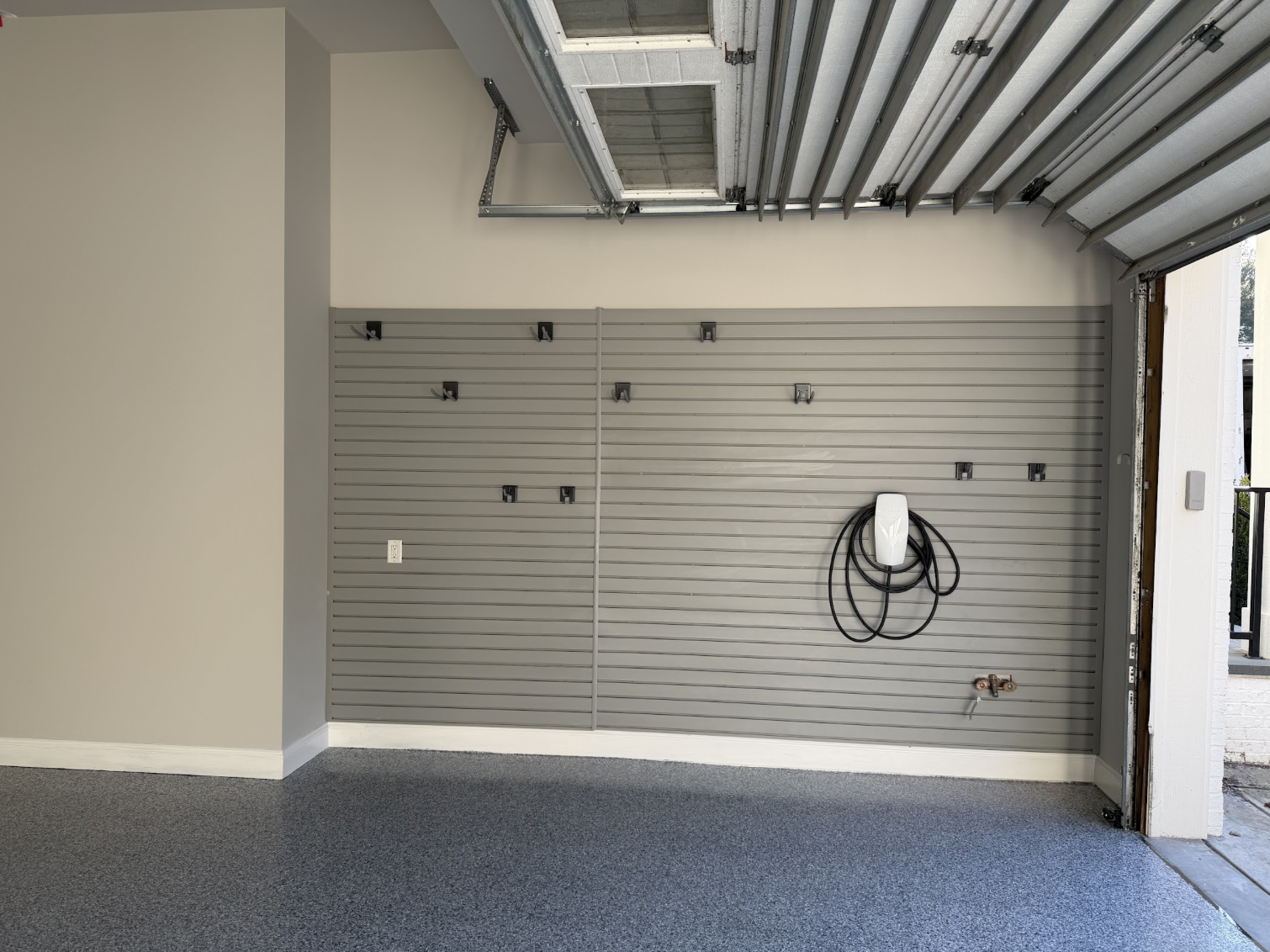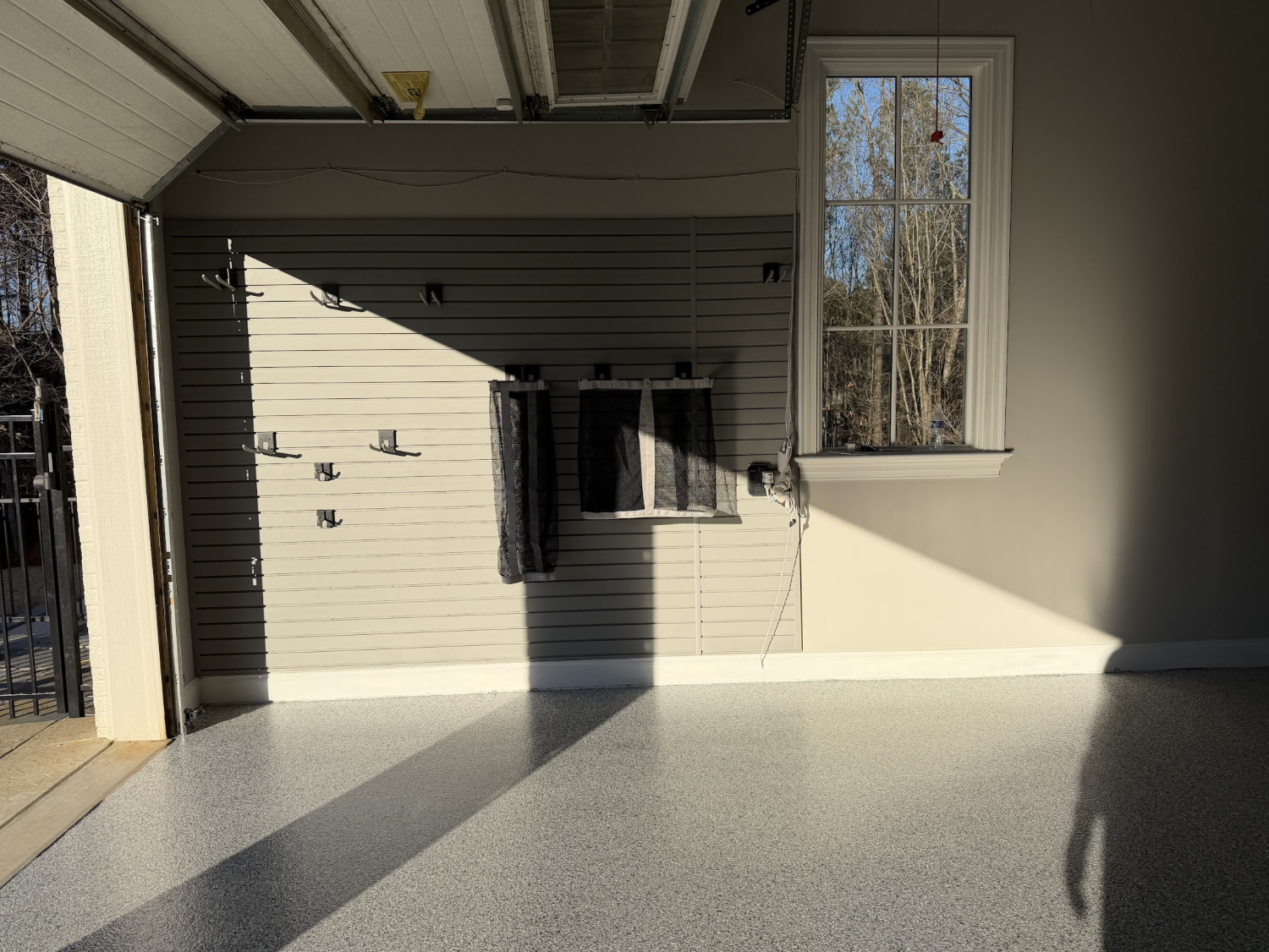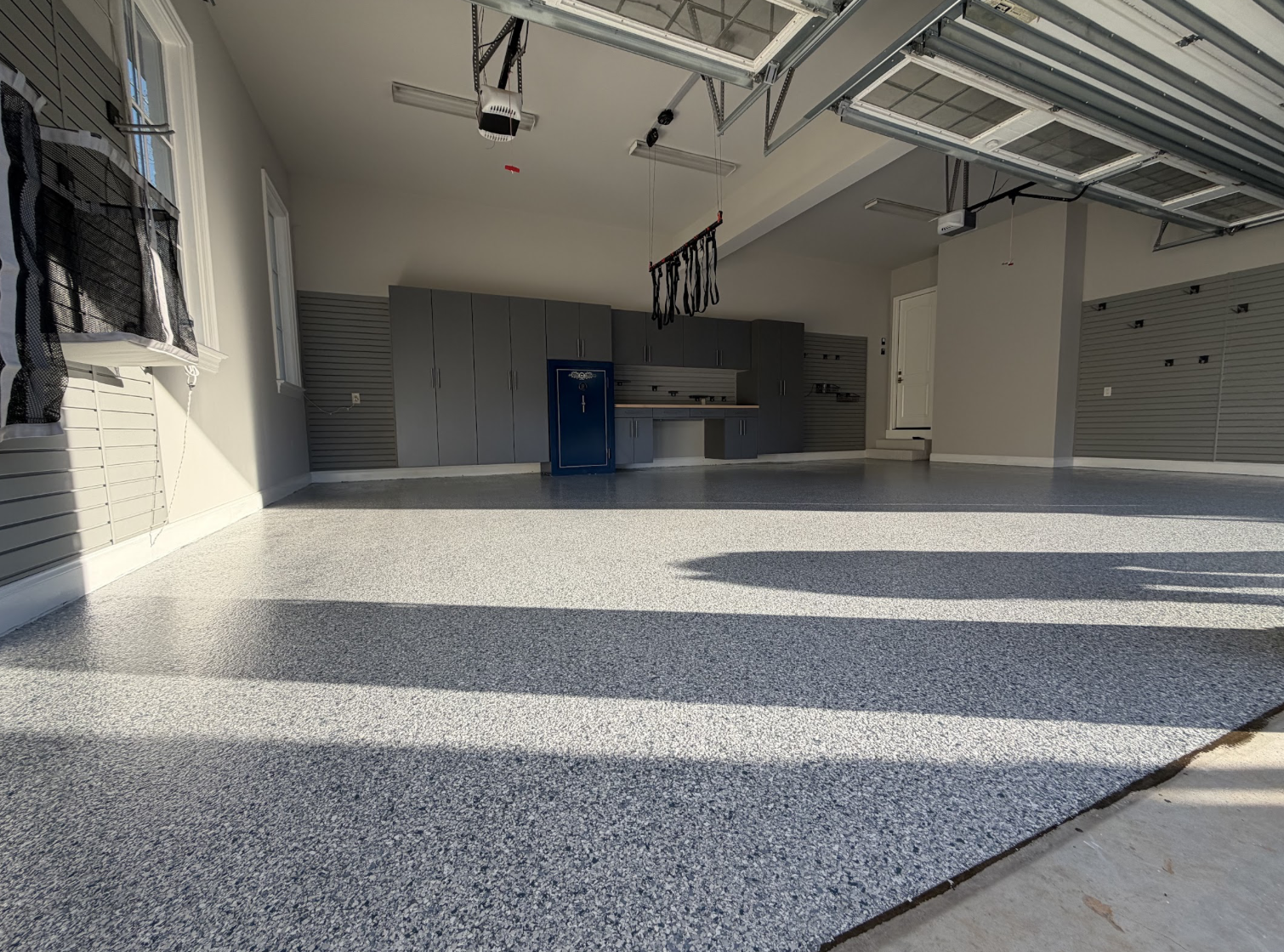 We installed custom cabinets to provide enclosed storage and reduce clutter, giving the garage a streamlined look. Slatwall was added to create flexible hanging space for tools and frequently used items, keeping everything accessible and off the floor. To finish the transformation, we applied a durable epoxy floor coating that delivers a long-lasting, easy-to-clean surface. The result is a garage that’s organized, efficient, and built to handle real life in Durham, NC.