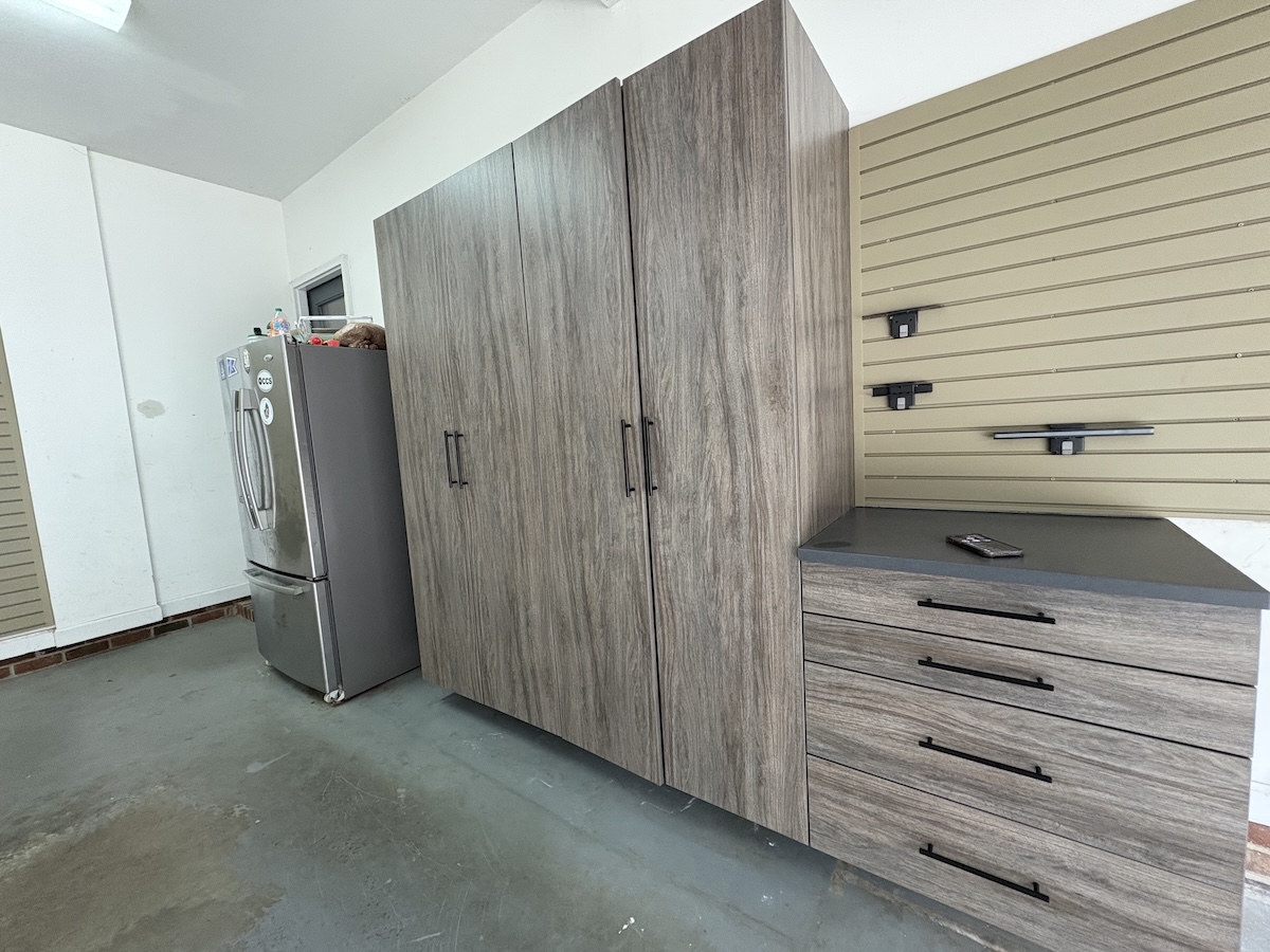 With the combo of cabinets for concealment, slatwall for quick access, and open shelves for visibility, this Cary project proves you don’t need a full remodel to make a big impact. It’s neat, durable, and ready for real life.