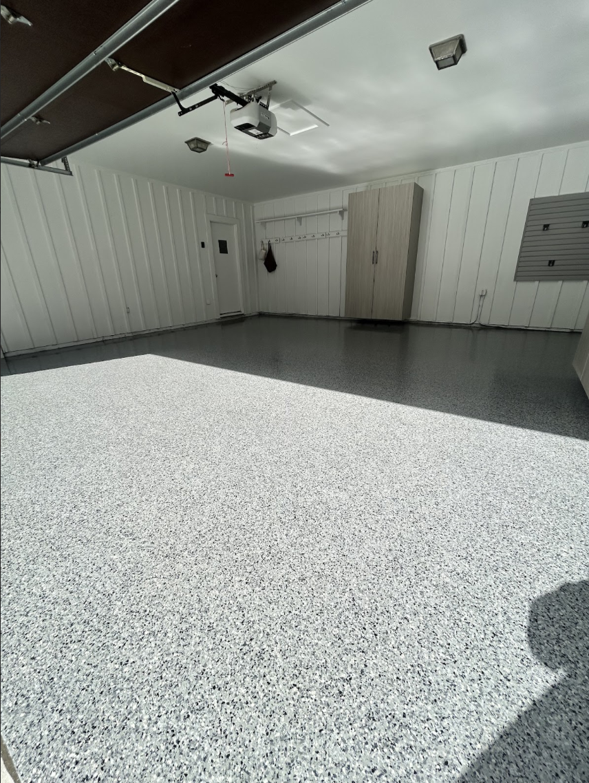 This Raleigh, NC garage received a full storage and flooring upgrade designed to improve both appearance and functionality. Mary Dee wanted a cleaner, more organized space where tools and household items could be stored neatly while still keeping the garage easy to maintain.