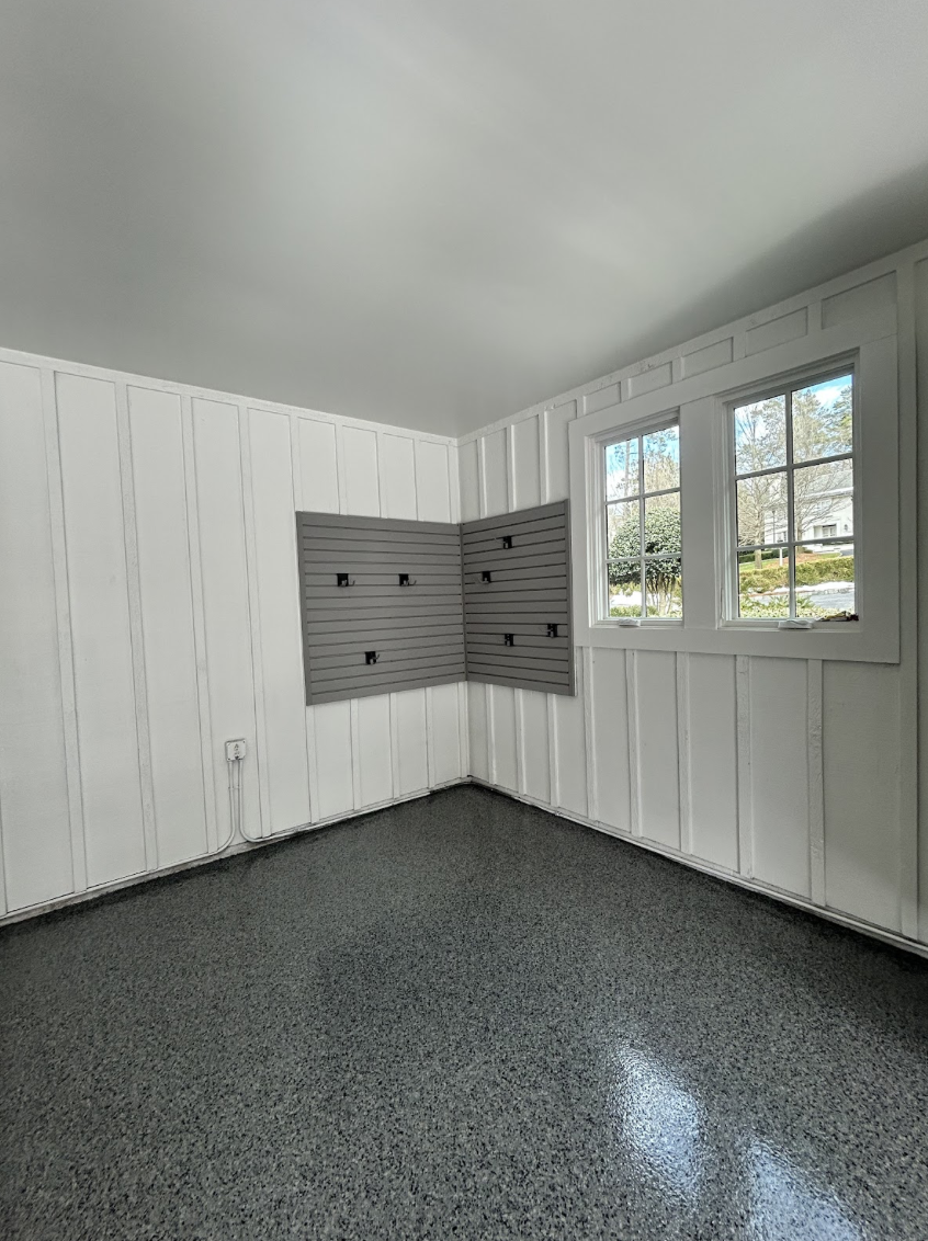 We installed a durable epoxy flooring system to cover the existing concrete and create a long-lasting, easy-to-clean surface. Cabinets were added to provide closed storage and reduce clutter, while slatwall was installed to hang tools and keep frequently used items within reach. The result is a garage that feels polished, organized, and ready for everyday use—an ideal transformation for this Raleigh, NC home.