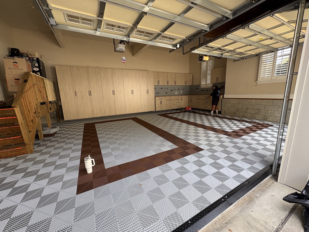 Steve’s goal was simple and smart: storage and organization while maintaining aesthetics. In Raleigh, NC, we delivered a clean, modern garage upgrade with a streamlined cabinet layout for everyday essentials, a full slatwall system for grab-and-go tools, and Swisstrax® tile flooring for that crisp, finished look. The result is a space that feels polished and purposeful—everything has a place, and the style holds its own.