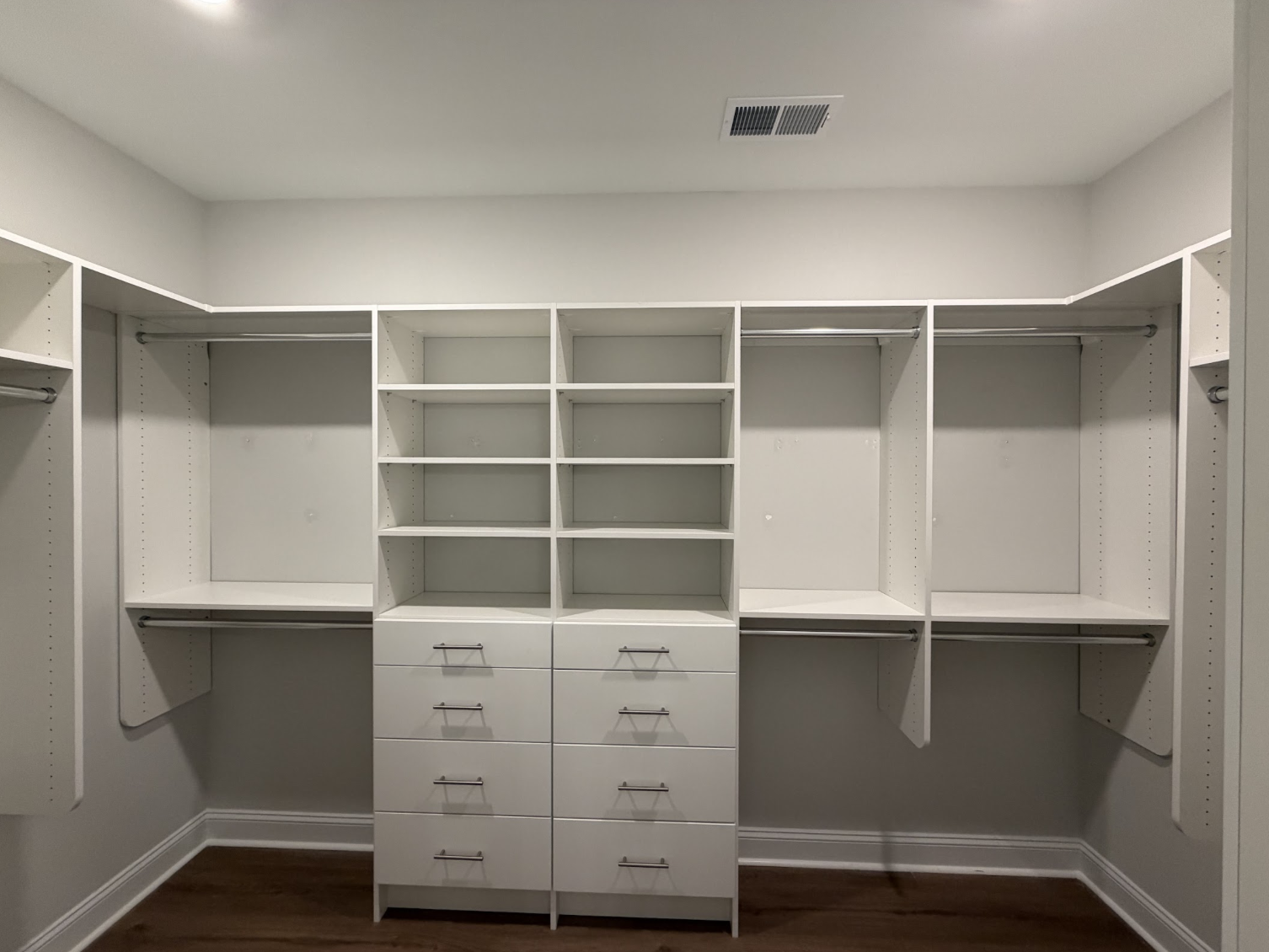 A closet transformation in Durham, NC replacing outdated wire racks with custom storage for better organization and usability.